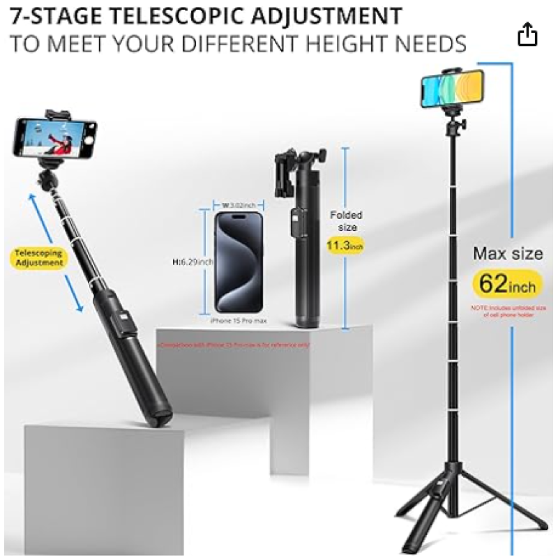 Selfie Stick,Group Selfies/Live Streaming/Video Recording Compatible with All Cellphones